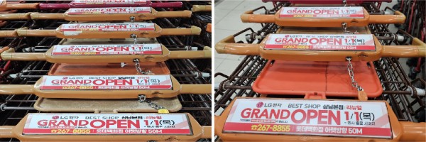 (남창원농협 카트 손잡이 광고, 남창원농협 주차장 출구 와이드칼라 광고)